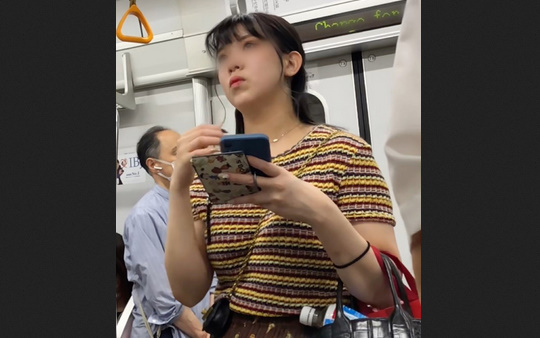 【すぐそこの眺め110】ブラ生地薄めのOLのHカップ爆乳に釘付け!!
